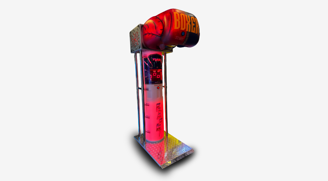 Máquina muy llamativa gracias a la luz que posee. Se puede configurar para que muestre un color o varios. Tiene la forma única de un guante de boxeo!